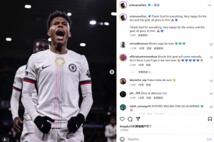 他也在赛后通过社媒晒出自己的庆祝照,并配文:“感谢上帝赐予的一切。非常高兴能赢得比赛并取得进球,一切荣耀归于祂。🙏🏽💙”
