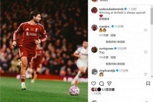 当选队内最佳!索博社媒庆祝胜利:在安菲尔德取胜总是很特别