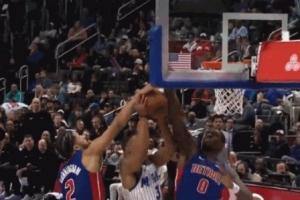 康宁汉姆帽翻贝恩出界 裁判给魔术球权&活塞挑战球权失败