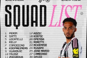 尤文对阵乌迪内斯名单:弗拉霍维奇、伊尔迪兹在列,K-图拉姆缺席